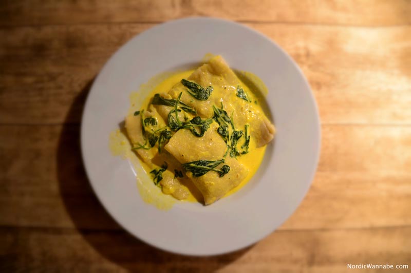 Ich hatte mal Hunger auf Ravioli. Aber nicht diese Dinger aus der Dose mit Tomatensoße. Es sollte schon etwas mit NordicWannabe-Charme sein. Also kam schnell die Idee mit selbst gemachten Ravioli mit Lachs. Am Ende sind es zwar mehr Maultaschen geworden und es ist wirklich schwer den Teig ordentlich hinzubekommen. Aber es geht und schmeckt sehr gut. Sollte der Pastateig zu trocken sein, einfach noch ein Ei hinzufügen. Sollte er zu klitschig sein, kommt noch Mehl hinzu. Irgendwie Norwegisch, oder? 🙂