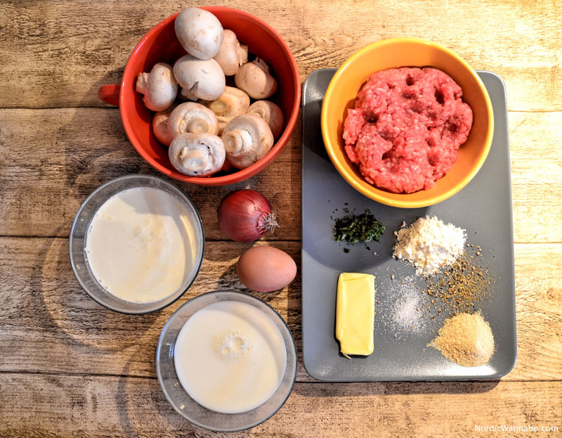 Die Zutaten für die Köttbullar (2 Personen, ca. 12 Bällchen):