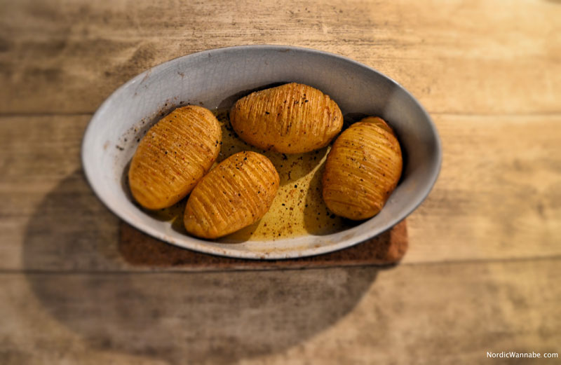 Köttbullar sind diese kleinen Bällchen aus Hackfleisch, die man eigentlich nur von IKEA kennt. Traditionell gibt es oft beim Einkauf des schwedischen Möbelherstellers dieses Gericht: Mit Preiselbeeren und Pommes. In Göteborg hatte ich zwei Mal „echte“ Köttbullar. Im Einkaufscenter nahe des Bahnhofs gab es mal eine große Portion mit Salat und Kartoffelpüree und dann gibt es noch diesen kleinen bekannten Imbiss etwas außerhalb des Zentrums. Hier gibt es, wie bei uns Döner und Co, Köttbullar zum Mitnehmen inkl. Kartoffelpüree und Preiselbeeren. Es wurde also endlich Zeit, dass ich diese Fleischbällchen (Kött = Fleisch, Bullar = Bällchen) mal selbst nachkoche. Als Beilage habe ich mich für schwedische Fächerkartoffeln entschieden. Sie sind sehr schnell zubereitet und schmecken lecker.
