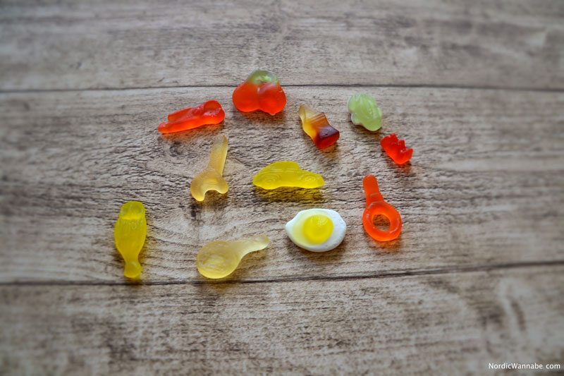 Viele der Formen kennen wir in Deutschland: den Schnuller, das Spiegelei, das Bärchen, die Colaflasche und den Frosch sowie die Kirschen. Aber in dieser Mischung sind die Weingummi-Teile hart und gar nicht so süß. Mein Fall waren sie nicht so. Natürlich muss nicht immer alles so süß schmecken. Aber die schmeckten komplett anders. Da bemerkt man auch den Unterschied, wenn HARIBO Produkte auf den Markt bringt. Jede Region hat sicherlich andere Geschmäcker. Die Skandinavier mögen es dann wohl eher nicht ganz so süß. 🙂