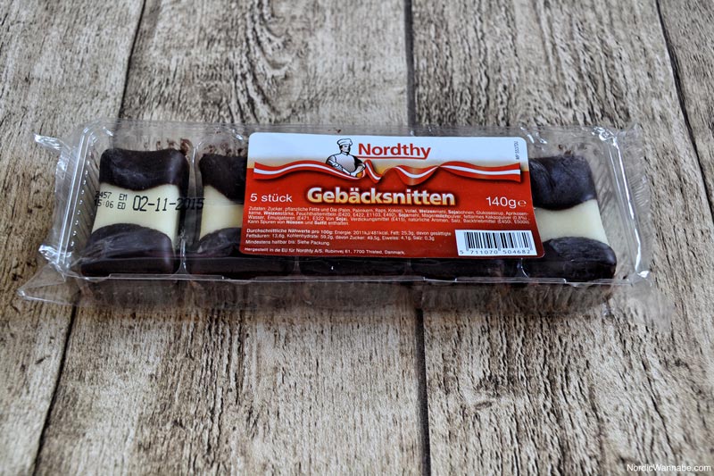 Gebäcksnitten aus Dänemark: Beim letzten Supermarkt-Auflug (Famila Nord) entdeckte ich die kleinen Kuchen Nordthy. Sie sind eine Mischung aus Yes-Törtchen und Baumkuchen. Sehr lecker. 🙂