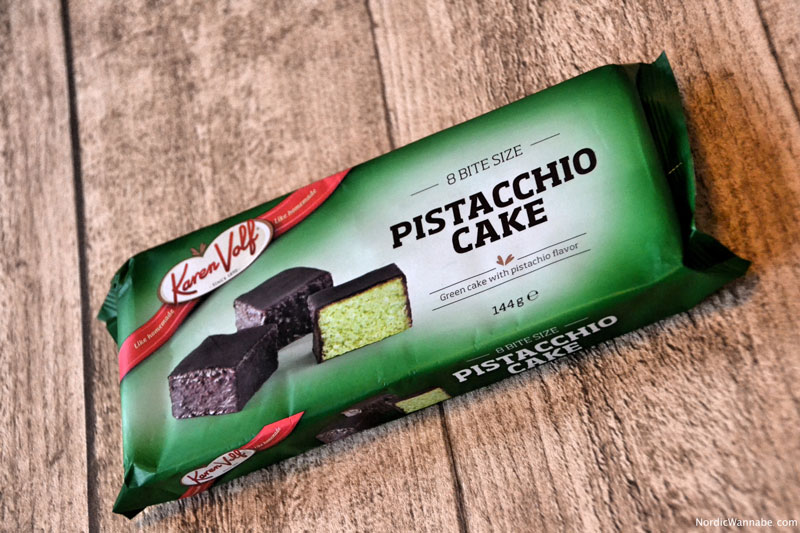Als ich neulich an einem Shop mit skandinavischen Süßigkeiten vorbeikam, konnte ich mich nicht zurückhalten. Passend zur Weihnachtszeit griff ich zu einer Packung mit kleinen Mini-Kuchen, die eine grüne Pistazien-Füllung haben. Sie stammen aus Stege, Dänemark und sind von der Firma Bisca.