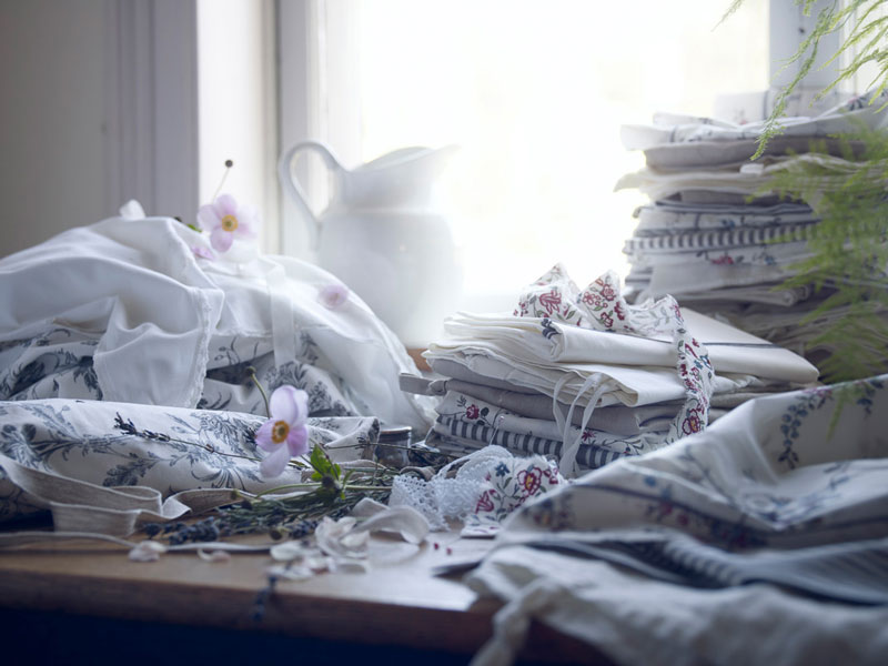 Mit dem Rosenmuster der INBJUDANDE Serie gestaltest Du Deine Küche und Dein Esszimmer individuell in ein skandinavisches Zuhause. Mit Geschirrtüchern, Schürzen, Tischdecken, Papierservietten, einem Dosen-Set, einem Tablett und Tischsets ist alles perfekt für „Kaffee und Kuchen“ vorbereitet. Das Tablett (mitte) ist besonders toll. Denn das Rosenmuster ist nicht so kitschig, weil das Design modern ist 🙂