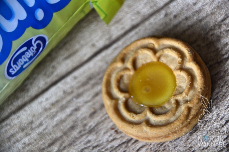 Göteborgs hat aber auch andere Singoalla-Sorten. Es gibt zum Beispiel auch was mit Zitrone. Schön frisch für Sommertage. Es sind Mürbekekse mit Vanillecreme und Zitronen/Limettenfüllung. In der Rollen stecken 190 Gramm runde Kekse. Vom Aufbau sind sie, wie die Blaubeer-Variante. Auf der Verpackung gibt es sogar eine kleine Schweden-Flagge. Vom Geschmack her, sind sie ebenso sehr mächtig und schmecken süß sowie etwas salzig.