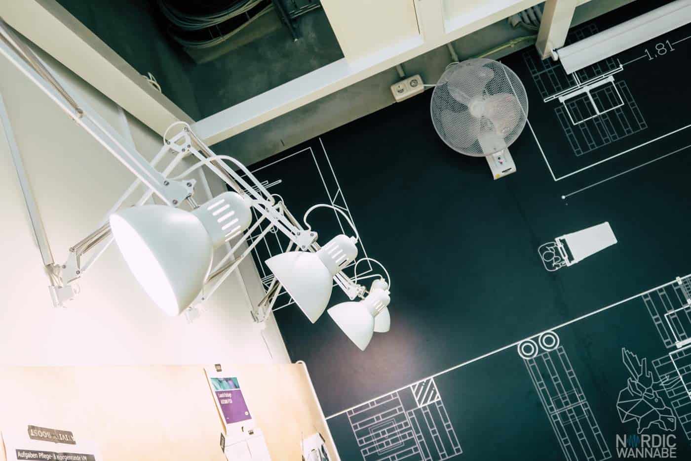 Hier sitzen alle Mitarbeiter, die sich um die Grafiken kümmern und um das Innendesign im IKEA Store kümmern. In dem Raum befinden sich Moodboards, Einrichtungszeitschriften und alles ist sehr kreativ eingerichtet.