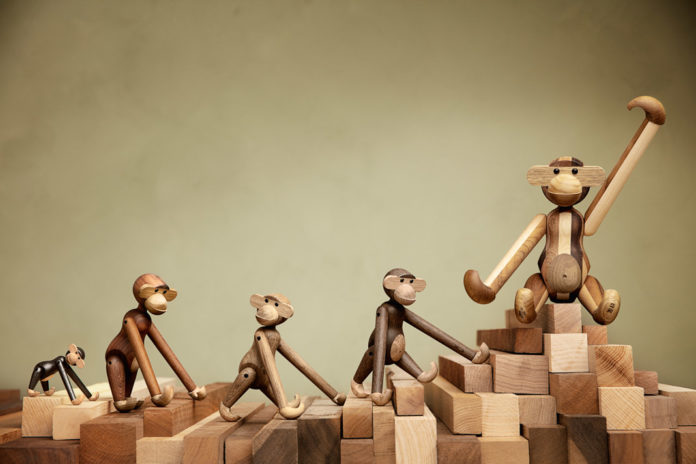 Der dänische Designer Kay Bojesen hat diesen bekannten Holzaffen im Jahr 1951 entworfen. Längst ist er nicht nur in Dänemark beliebt, sondern weltweit ein Designklassiker.