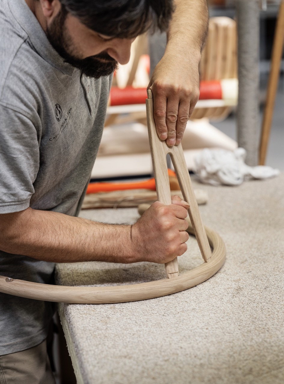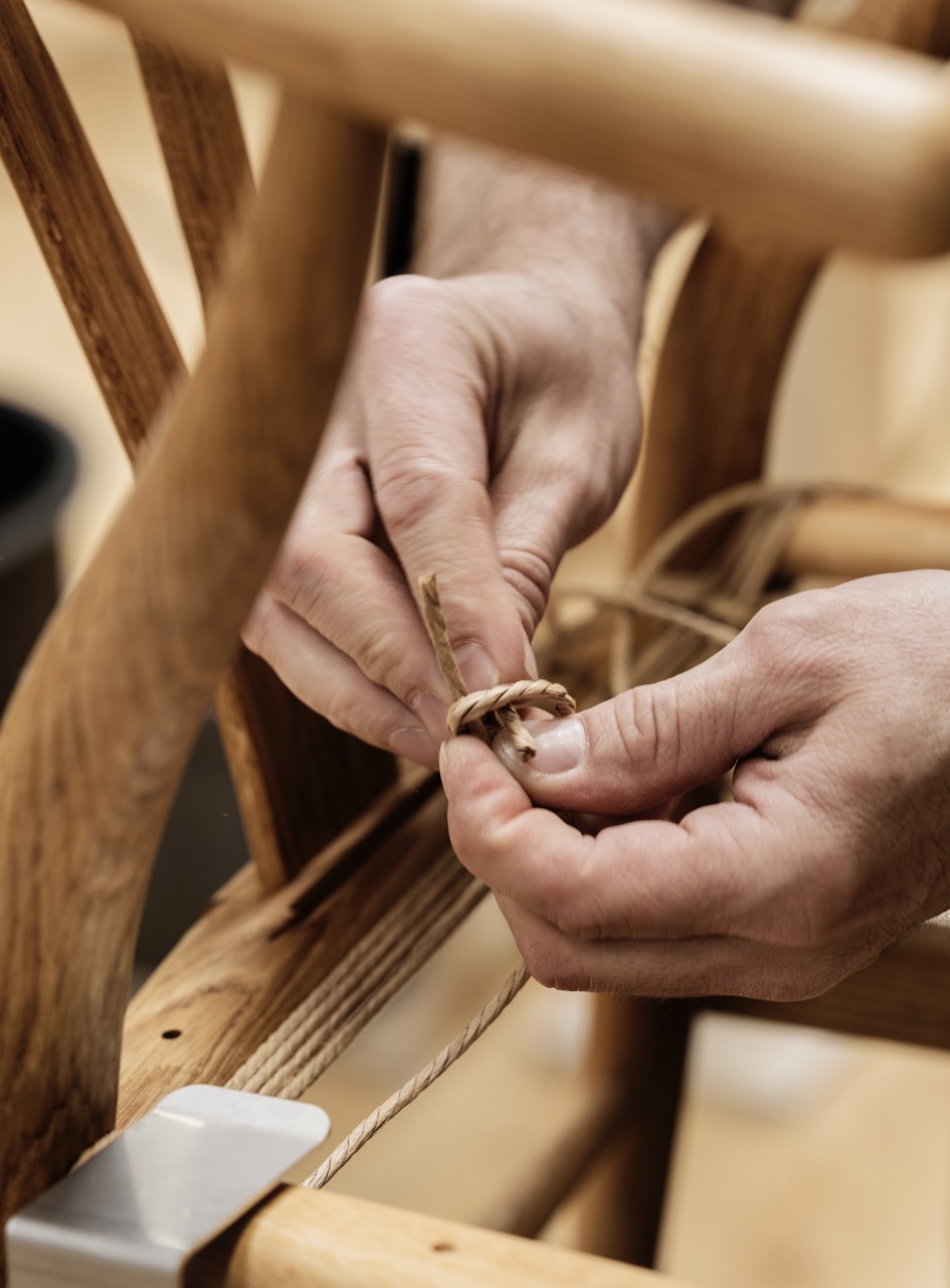 Knud Erik Hansen: Es gibt so viele Unterschiede. Ein gefälschter Stuhl wird in der Regel als Kompromiss hergestellt. Die Hersteller von Fälschungen konkurrieren preislich und untereinander. Im Gegensatz dazu konkurrieren wir rein auf Qualität. Es ist wie der Vergleich einer Schweizer Uhr mit einer in China hergestellten Uhr. Es gibt einen großen Unterschied. Die chinesische Uhr könnte ein paar Jahre halten, bevor sie weggeworfen wird, während eine Rolex Generationen lang halten und an Wert gewinnen wird. Dasselbe gilt für unsere Möbel. Wenn Sie bei einer Auktion in den USA einen 40 Jahre alten Wishbone-Stuhl kaufen, zahlen Sie mehr als für einen heute hergestellten brandneuen. Die Leute glauben, dass die älteren Stühle origineller sind, obwohl sie es nicht sind. Ich schätze, dass sie an Wert gewinnen. In 40 Jahren wird das, was ich heute produziere, zu einem höheren Wert verkauft werden, und sie werden genauso gut sein wie unsere aktuellen Produkte. Wir haben sogar angefangen, gebrauchte Möbel zu kaufen, sie zu renovieren, neue Sitze zu machen und sie wieder zu verkaufen. Es ist nichts falsch daran, also warum verschwenden? Wenn die Leute es loswerden wollen, können sie es uns zurückverkaufen, und wir werden es renovieren und wieder verkaufen. Wir verbergen nicht, dass es gebraucht ist, aber es ist genauso gut wie der Kauf eines neuen.