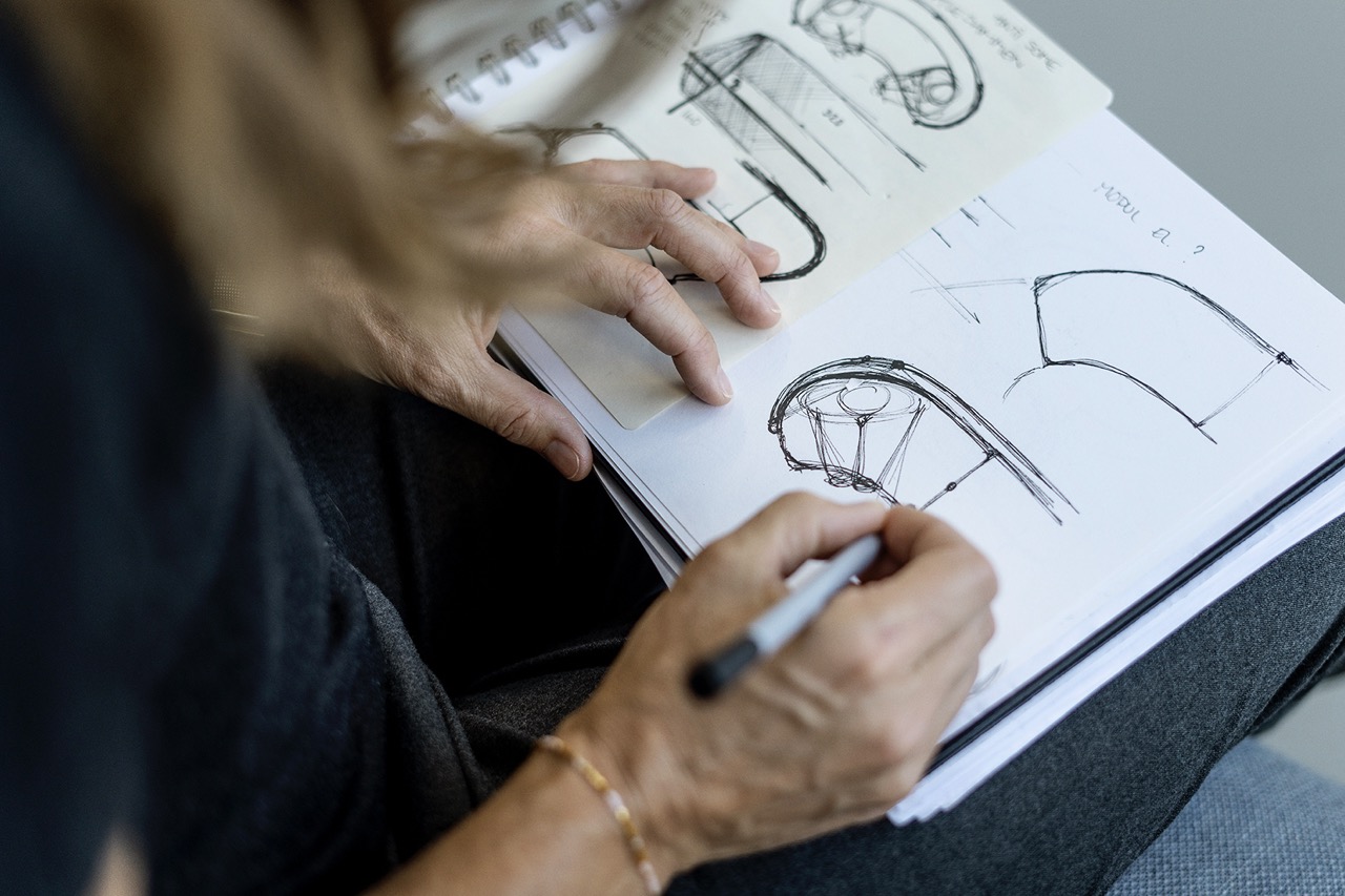 I typically begin with thorough research on the brief, asking many „why“ questions to ensure the justification for creating a new product. I sketch by hand and in 3D simultaneously and create small cardboard models of the concept. I then collaborate with the manufacturer to test details and finalize the design and materials. I like to be involved in the storytelling and marketing of the design to ensure that the important details and design intentions are communicated effectively.